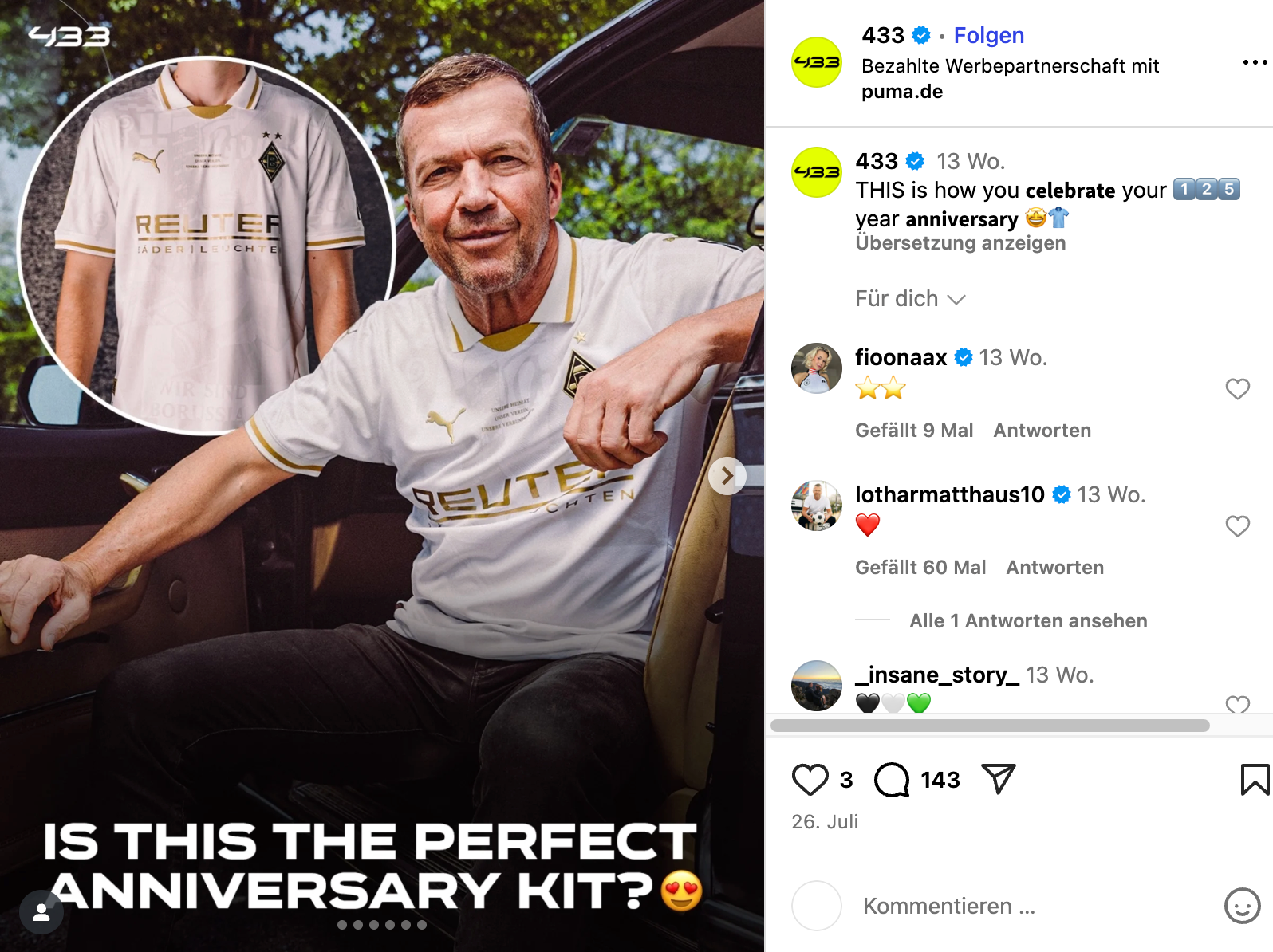Collaborations with 433 and 11Freunde amplified the storytelling around heritage and fan culture.