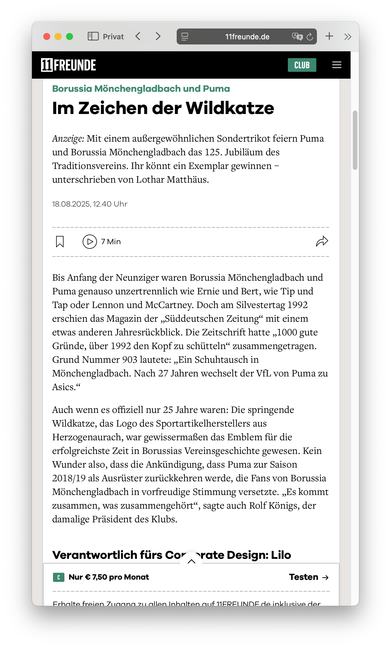 To mark Borussia Mönchengladbach’s 125th anniversary, PUMA launched a commemorative jersey supported by an integrated campaign across digital, social and PR channels.